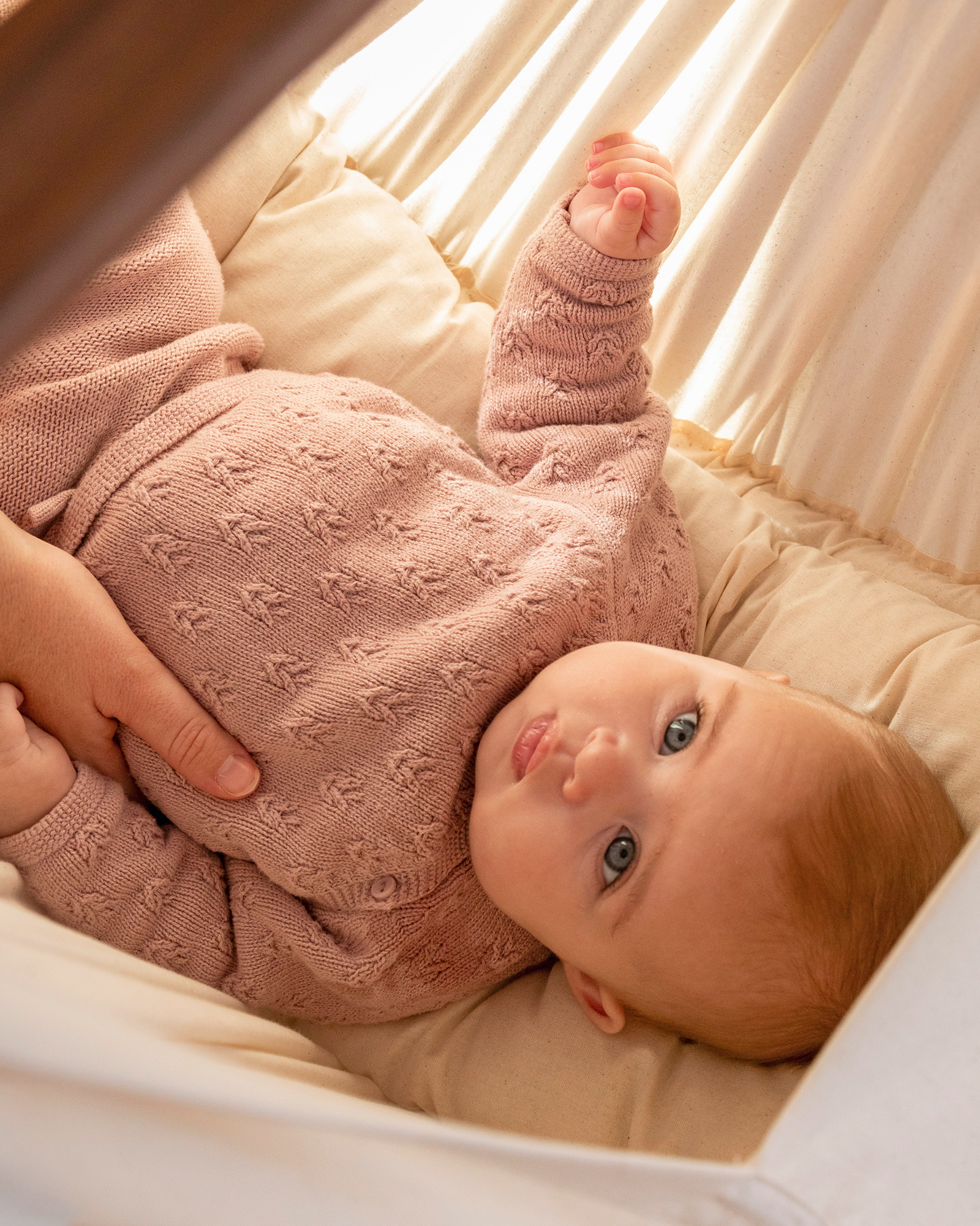 Rocking should be introduced gently and slowly – either manually or with our Moonboon Motor. You can gradually increase the tempo and duration of rocking as your baby gets used to it. You’ll soon learn what works for you.