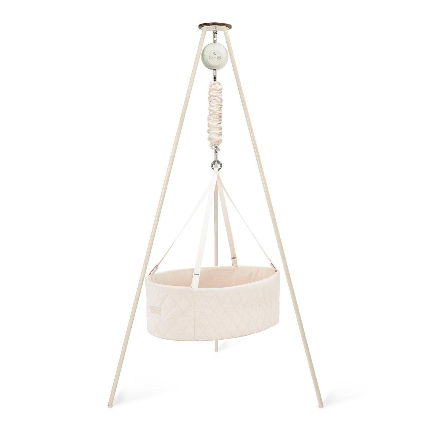 Create a peaceful sleep space for your baby with our cozy oval cradle, featuring a flat base for extra comfort and gentle rocking from our motor. Paired with a sturdy, Scandinavian-style tripod stand, this setup brings soothing relaxation and looks effortlessly stylish in you home.